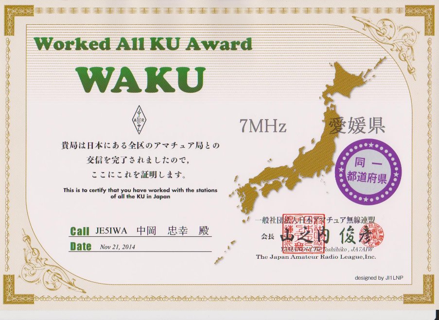 JARLのWACA WAGA、VU-1000,AJA、US,CQ社の
